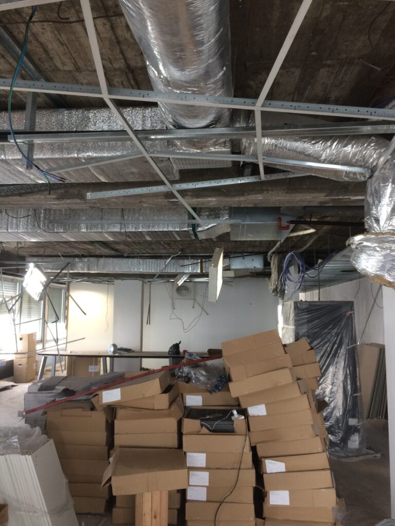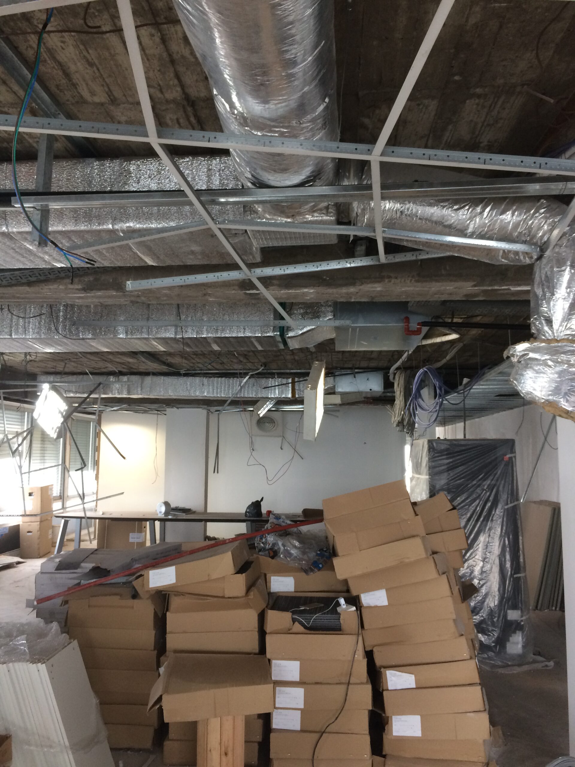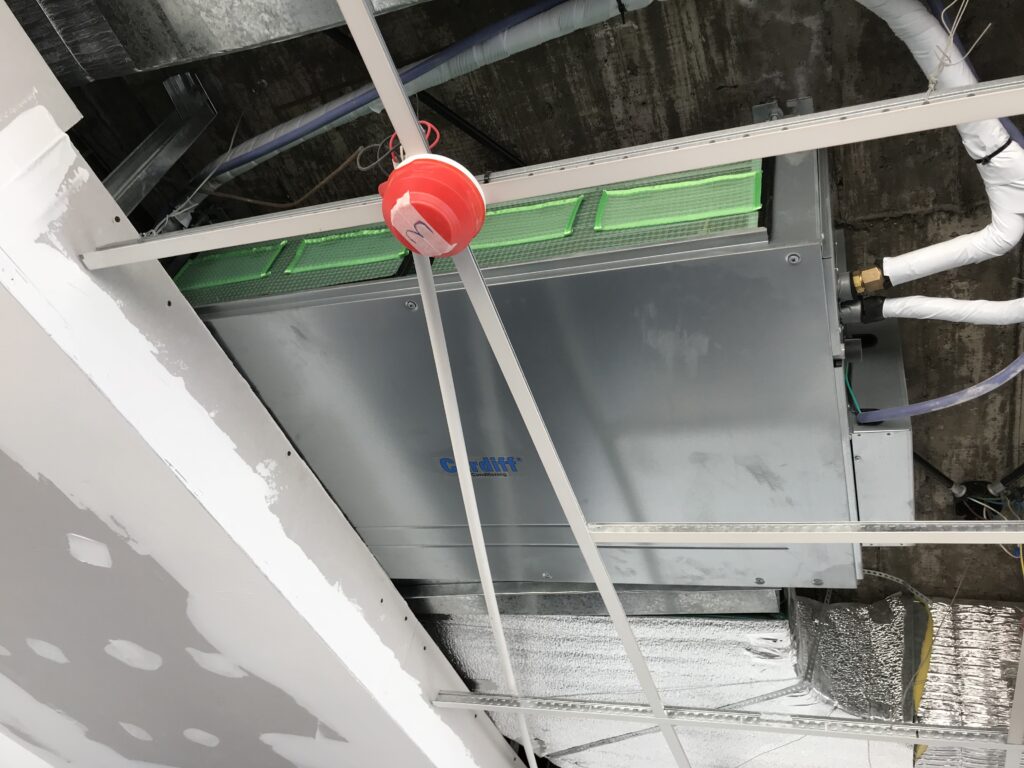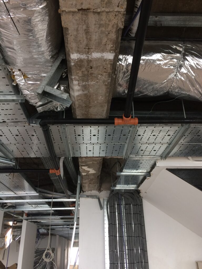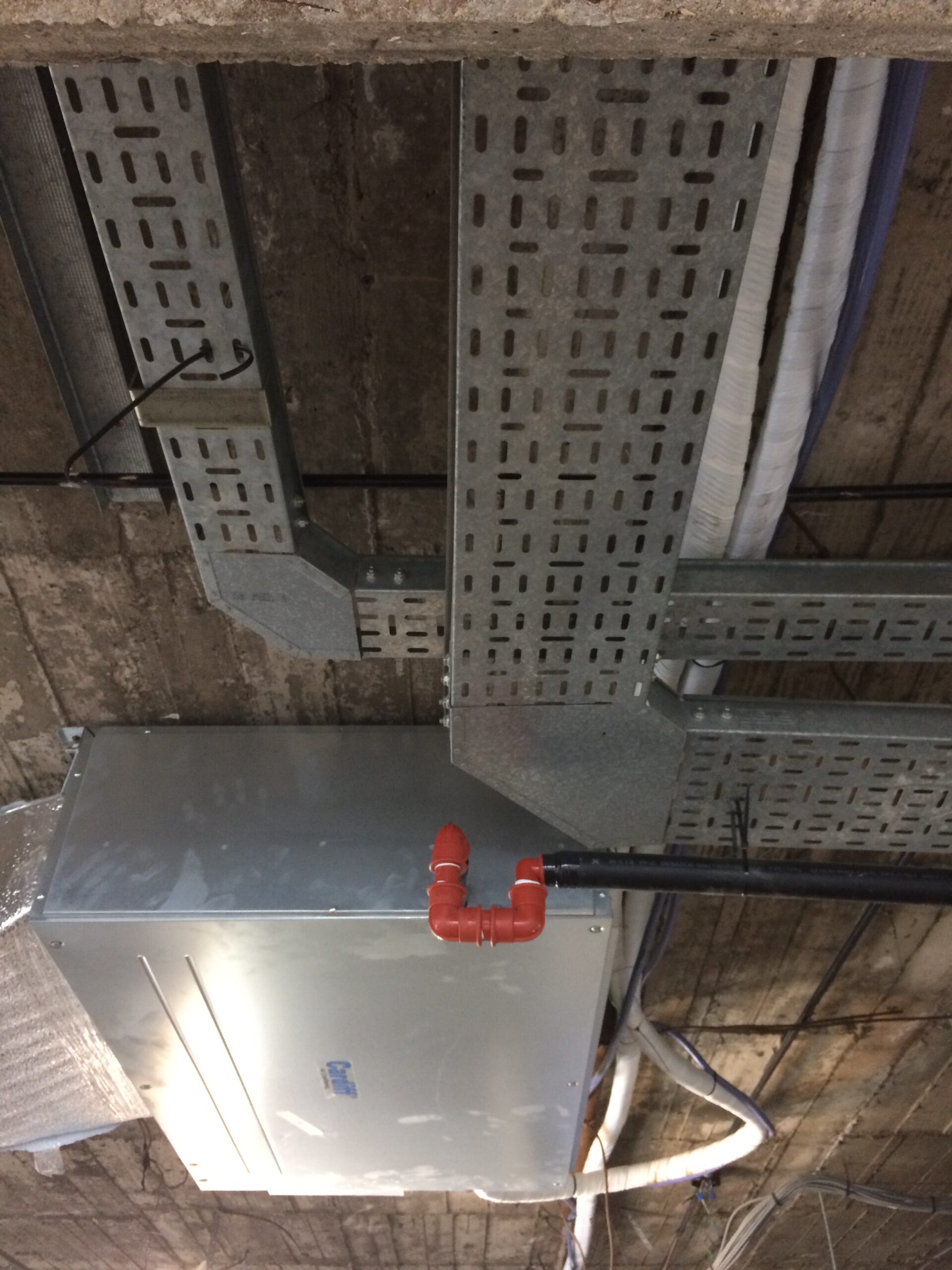 Instalación de 14 Aires bajo silueta en 2 pisos de oficinas de personal y gerencia, tendido de conductos, instalación eléctrica y control centralizado.